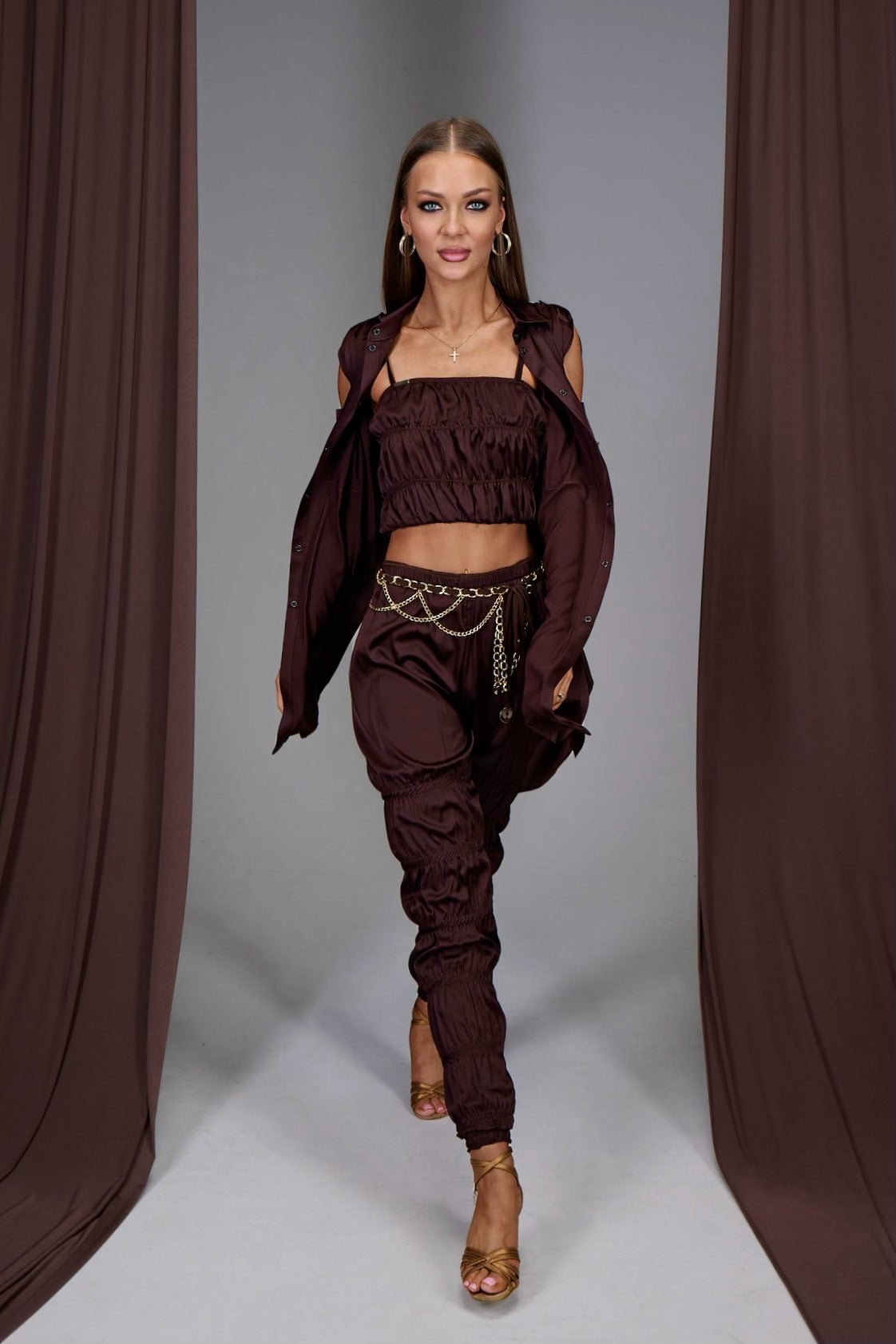Crafted from satin with a subtle sheen that drapes beautifully and moves with your body. Perfect for layering over your favorite practice wear or wearing as a standalone statement piece during training sessions.