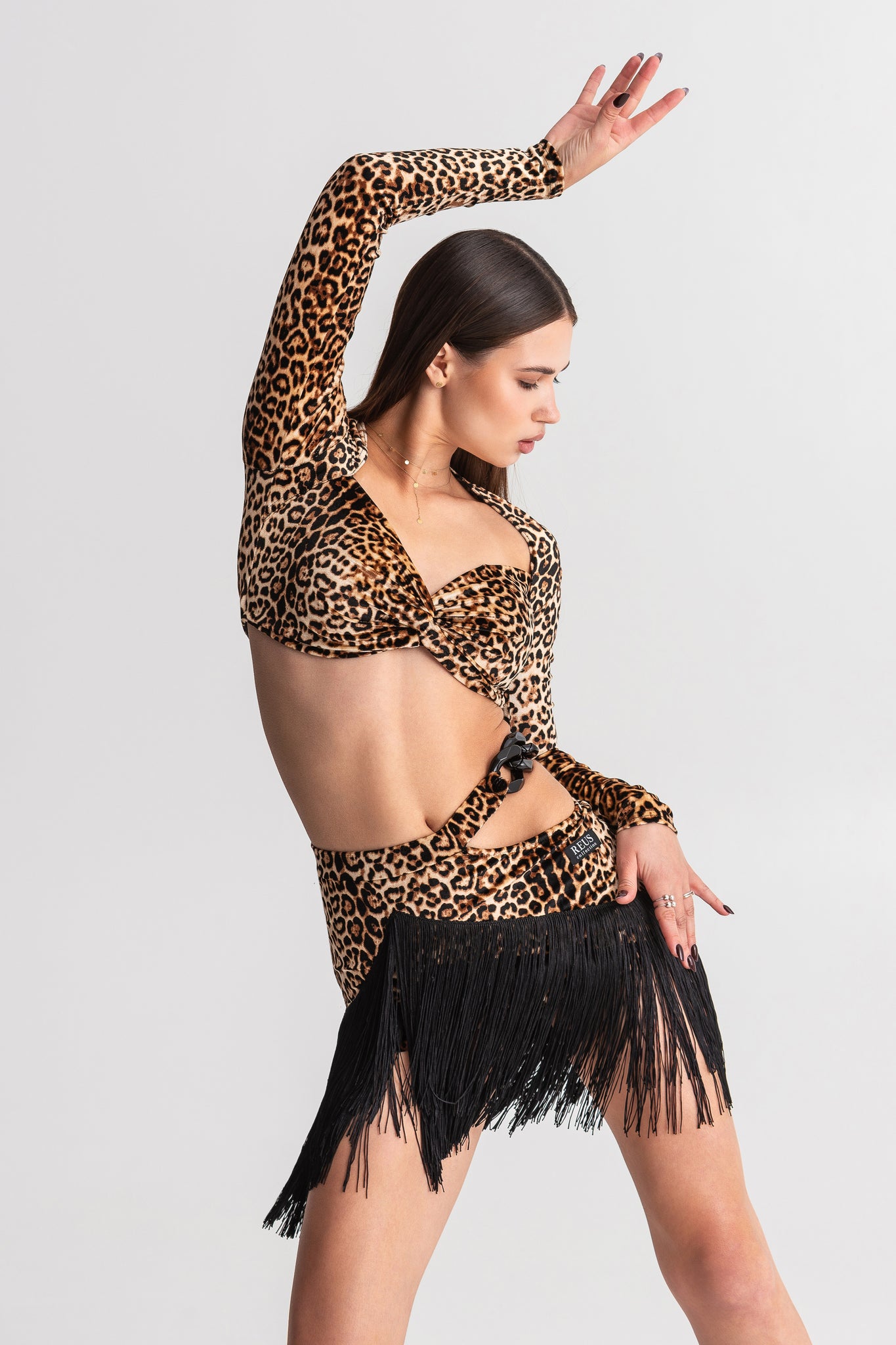 Crafted from velour fabric with a striking leopard print that adds fierce style to your training wardrobe. The soft, stretchy material moves beautifully with your body while maintaining its shape through intensive practice sessions.